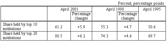 The survey in April 2001 was conducted by central banks and monetary authorities of 48 countries and regions with data from approximately 2,800 reporting institutions in total.2