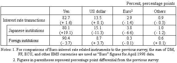 (4) Yen-linked single interest rate derivatives comprises 82.7 percent of all interest rate-related derivatives, up 1.6 percentage points from 1998.