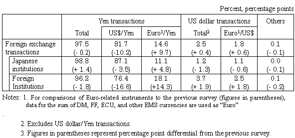 (5) US dollar/Yen transactions amount to 81.7 percent of all foreign exchange-related contracts, declining by 10.2 percentage points from three years ago.