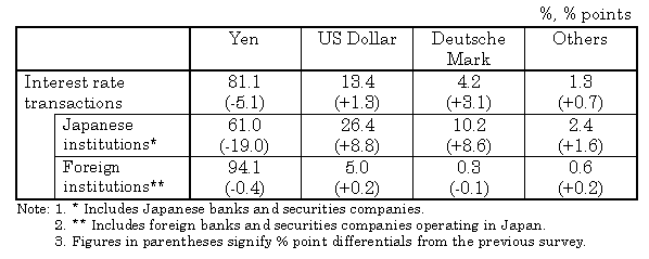 c) Yen-related transactions continued to dominate Japanese market, increasing in share to 83.5% from 81.1%.