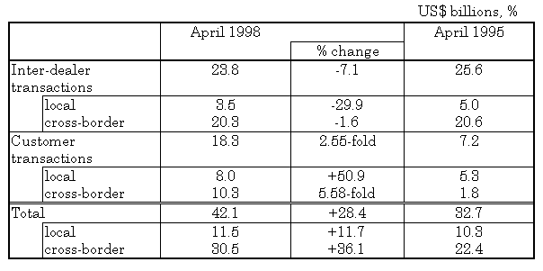 a) Average daily turnover in the Foreign Exchange Market in Japan during April 1998 was $148.7 billion, 7.9% lower than in April 1995.