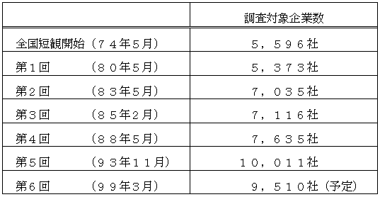 また、今回の見直しに当たっては、「1996年事業所・企業統計調査」において従来に比べ詳しい母集団情報(企業別の雇用者数)が得られたこともあって、調査対象企業数を必要最小限に抑えつつ、現行統計に比べ、業種別、規模別にみた全国の企業動向をより的確に捉えることができるように工夫しました(調査対象企業の見直しに関する詳細については、別添資料をご参照下さい)。