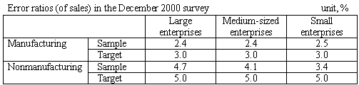 This time, we have checked the statistical accuracy of the last Tankan survey (December 2000), and decided to add another 55 sample enterprises. As a result, the total number of sample enterprises for the March 2001 Tankan will be 8,992 enterprises. The details are as follows: