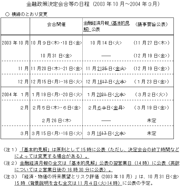 「金融経済月報」は、現在、決定会合の翌営業日に公表しているが、このうち「基本的見解」部分について、即日公表することとする2。