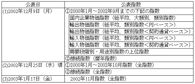 また、2000年基準の新指数につきましては、以下の日程で公表いたします。