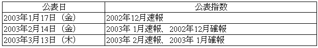 なお、2003年1月から3月までの2000年基準企業物価指数の月次公表予定は以下の通りです。